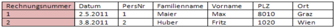 Uns fällt aber auf, dass durch das Einfügen einer Personennummer, die Personen leichter identifiziert werden können als durch den Familiennamen. Daraus ergibt sich folgende Tabelle: